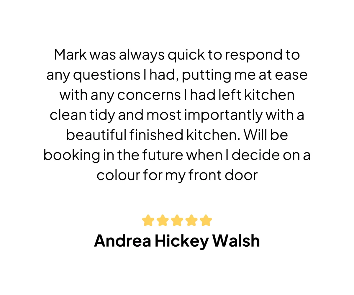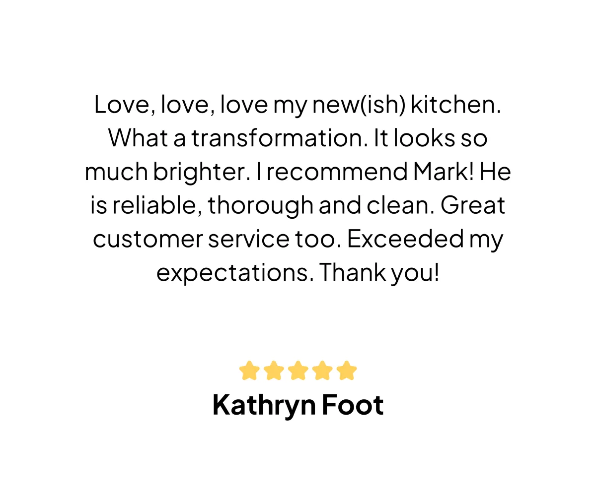 You are happy with the current layout of your kitchen, zero disruption, and the kitchen left new, modern looking, clean & clear